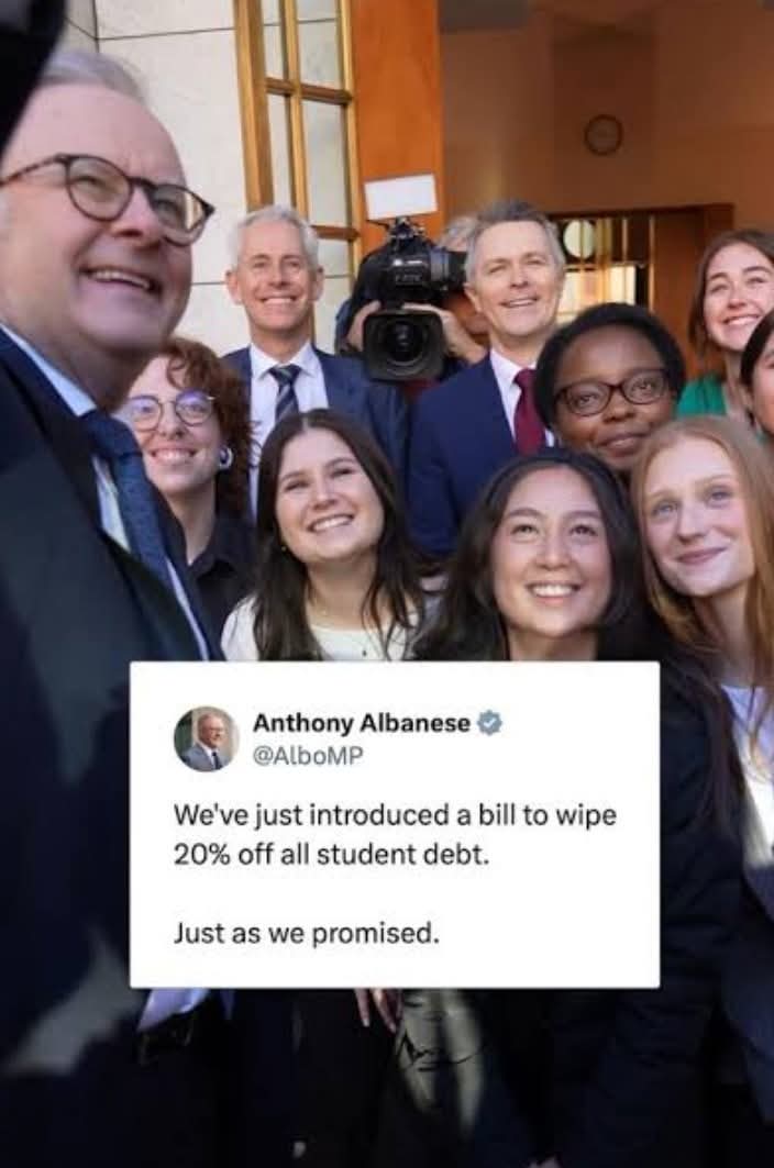 الوعد الانتخابي الحكومي من البانيزي سيطبق المستفيدين 3.000.000 طالب الجزء الأول 1.5 مليون طالب المستفيدين في شهر نوفمبر الجزء الثاني 1.5 مليون طالب المستفيدين في شهر ديسمبر ماهو رآيكم طلاب الجامعات ؟؟؟ المصدر/Min Australia...