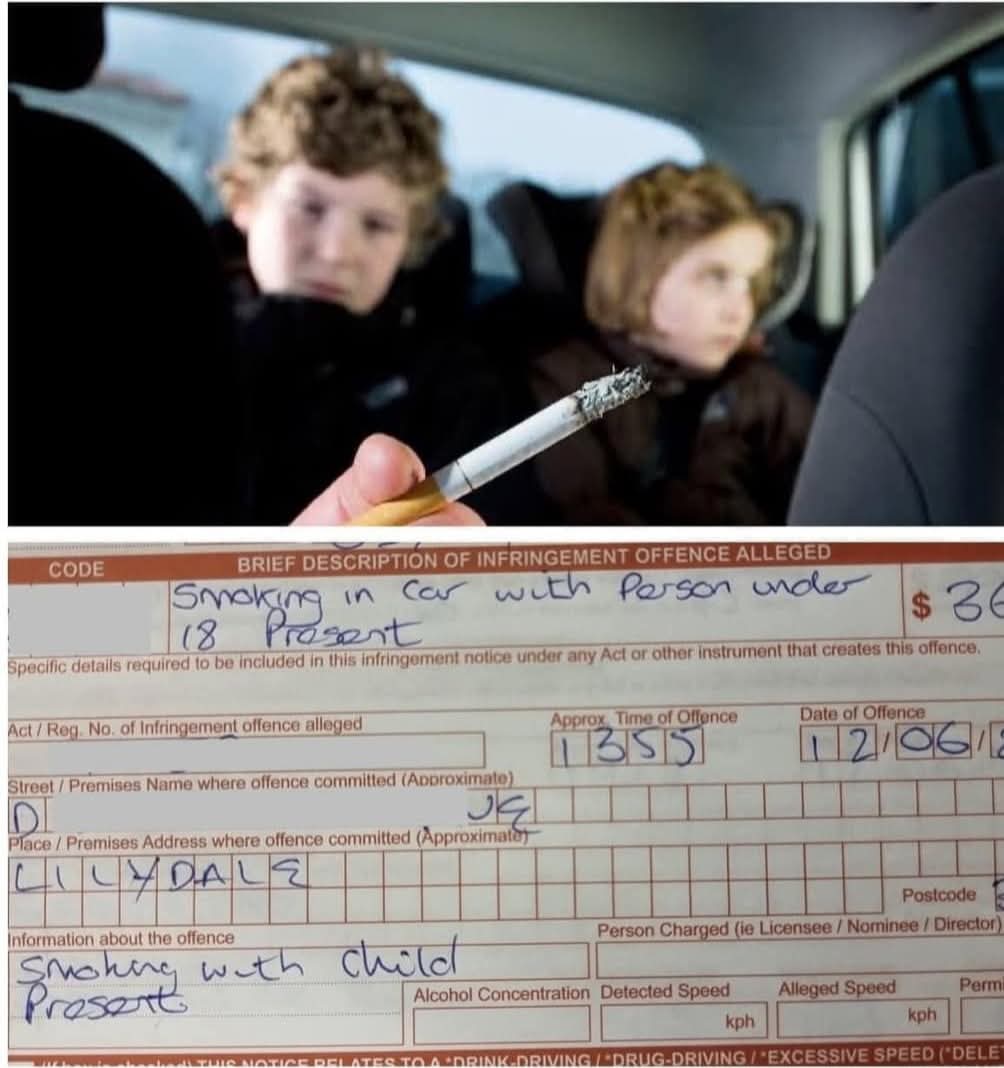 التدخين في السيارة ومعه اطفال تحت عمر 18 سنة بالسيارة