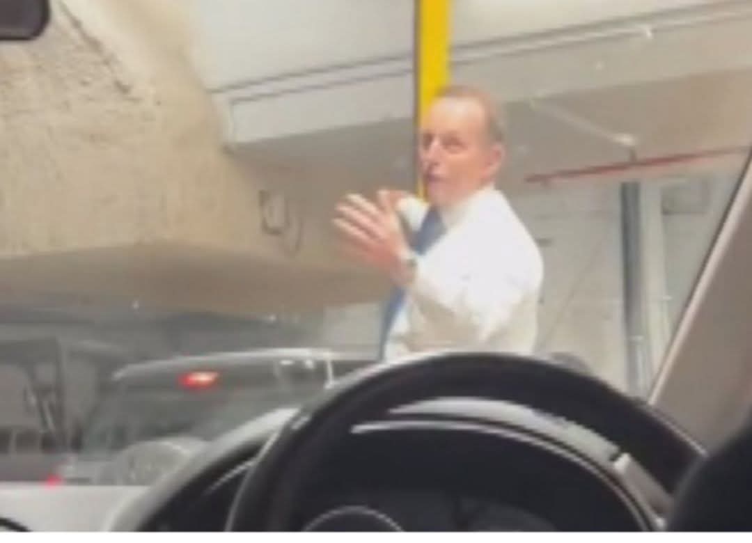 تظهر رئيس الوزراء الاسترالي الأسبق توني أبت وهو يساعد الناس على الخروج من موقف السيارات بعد تعطل البوابة …